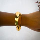 A highly polished gold bangle with a graceful, seamless crescent shape that molds perfectly to the wrist, creating an instant look of quiet, modern luxury.