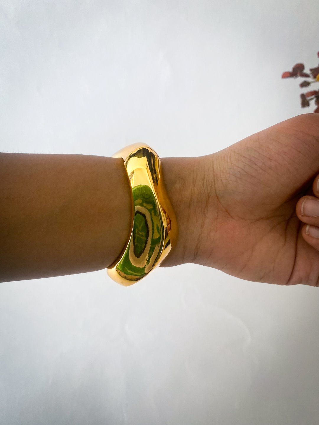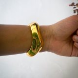 This bangle is crafted using high-quality gold-plated alloy and is coated with anti-tarnish protection. Rest assured, all our pieces are skin-safe, hypoallergenic, and nickel-free for comfortable, worry-free wear.